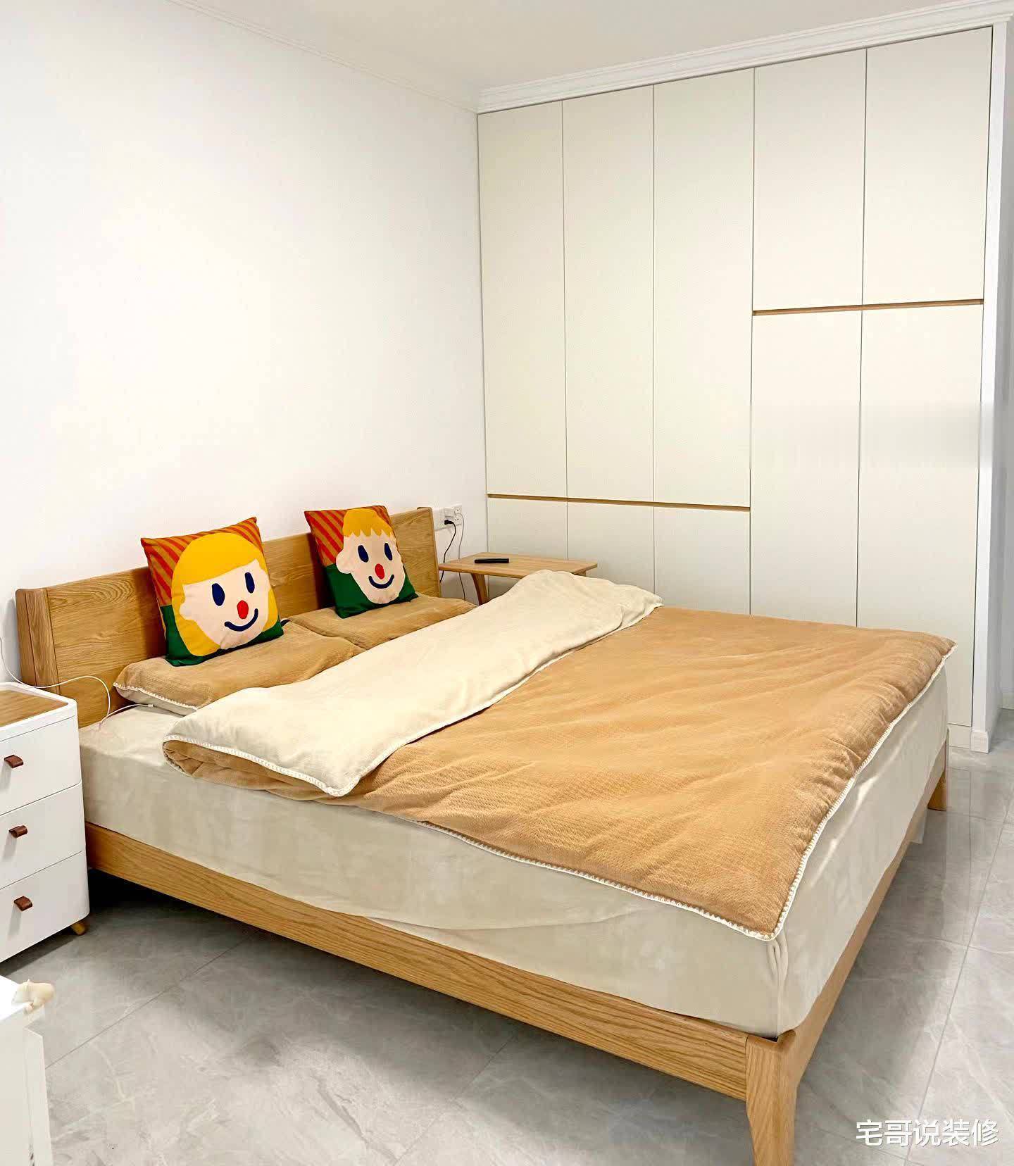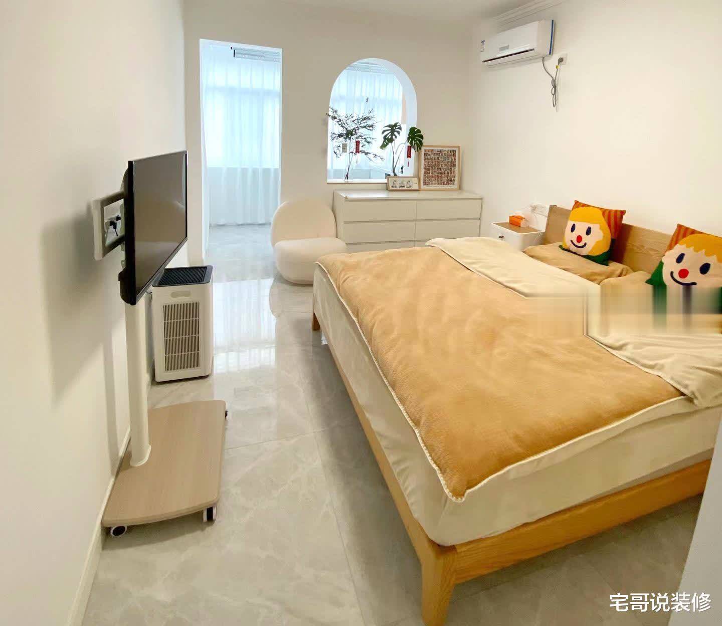 主卧相比于室内其他空间来说,是最大最宽敞的空间了,尤其是在拆掉了和阳台之间的隔断门窗后,空间更加宽敞明亮了。