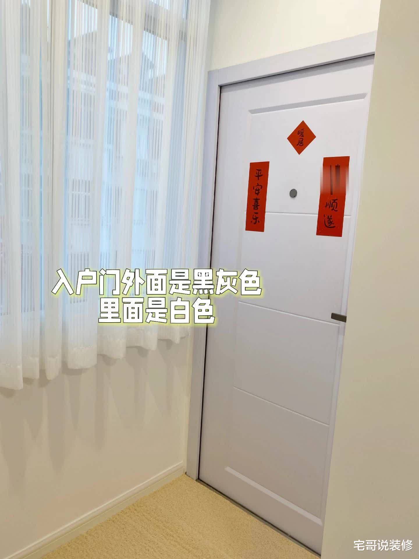 入户门是新换的,选择了好久才挑到这款满意的颜色,外面是黑灰色,里面是白色的,和家里的装修风格非常搭。