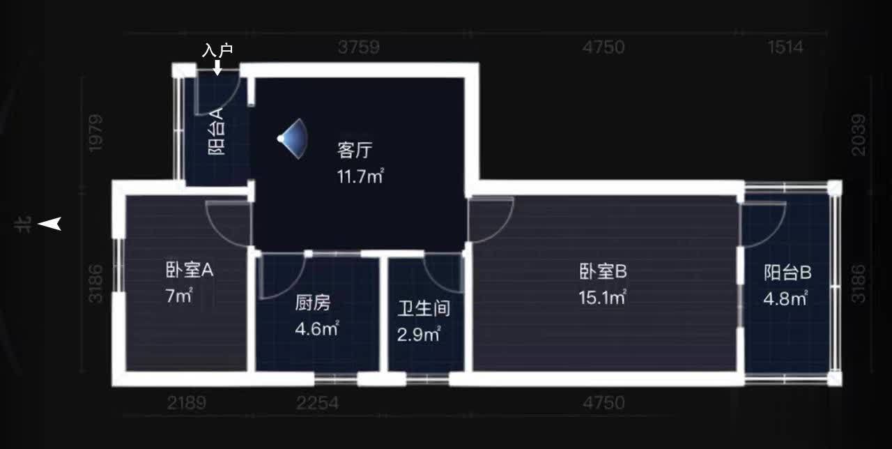 房屋坐标江苏省常州市,建筑面积57㎡,套内面积46㎡,户型南北通透,是一个2居室的格局。