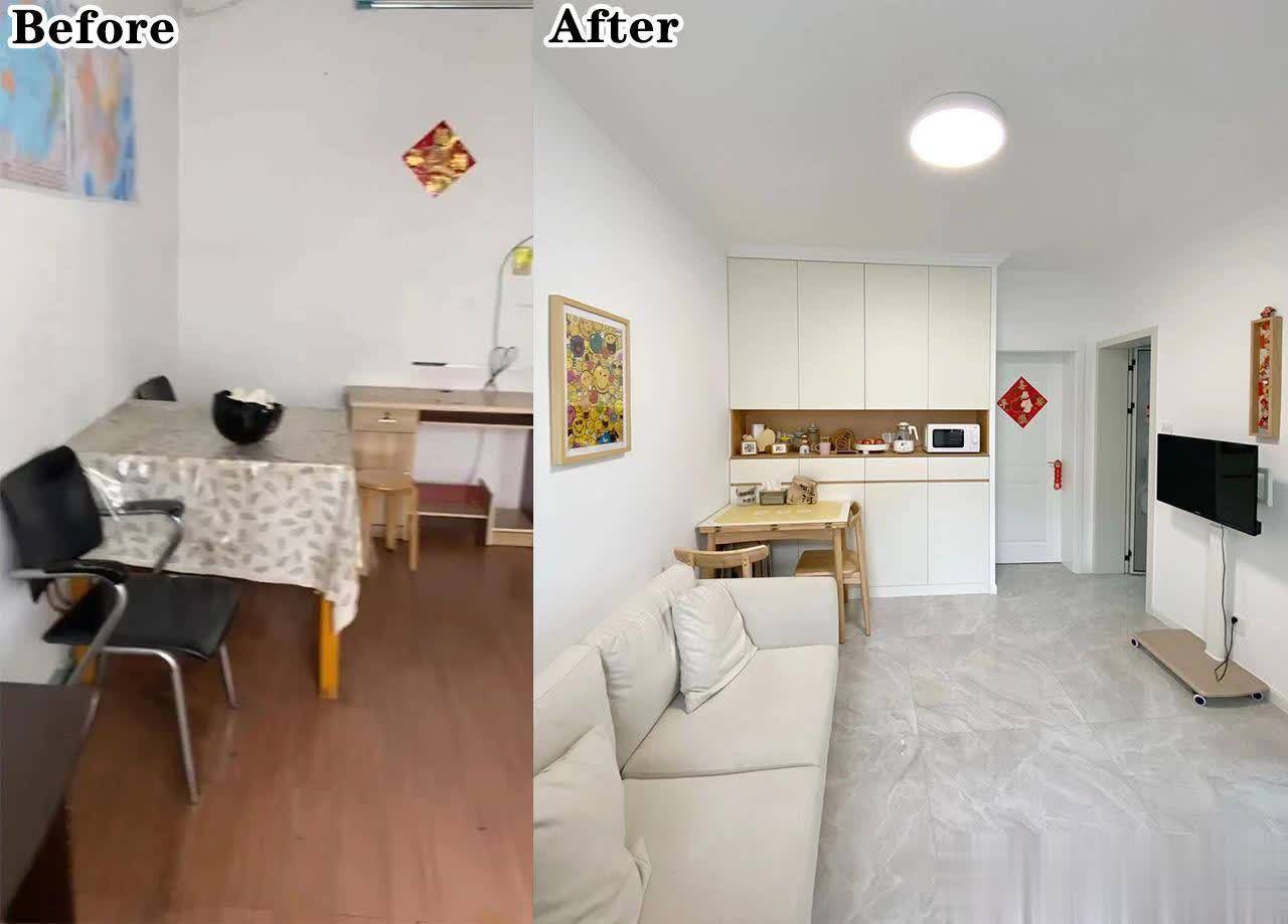 让人惊喜的是,“老破小”在经过重装改造之后,变成了一个简约大气又实用的温馨小家,一家3口过上了安稳幸福的生活。