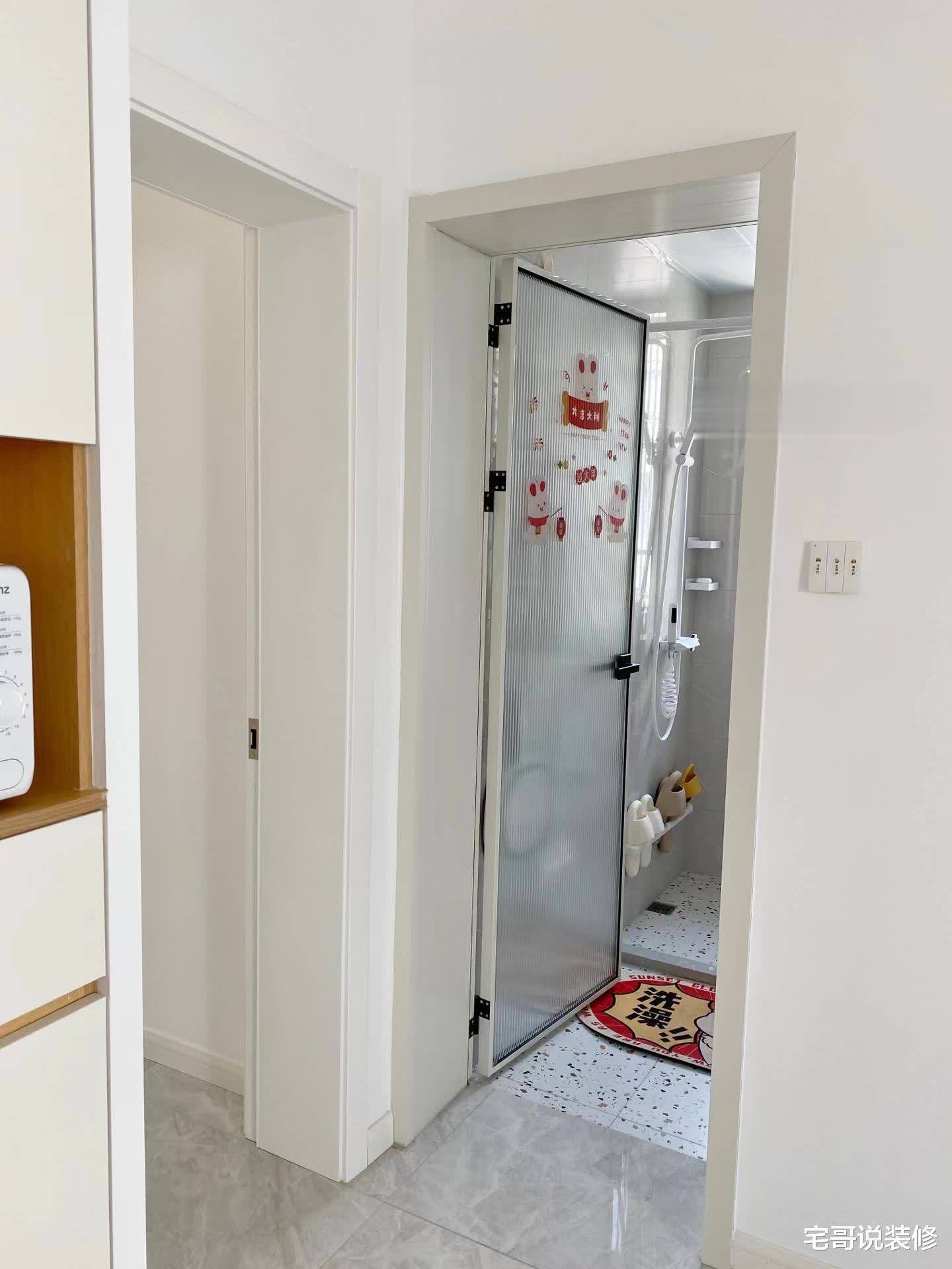 卫生间的门换成了长虹玻璃门,这样可以让小空间变得更加明亮和通透。
