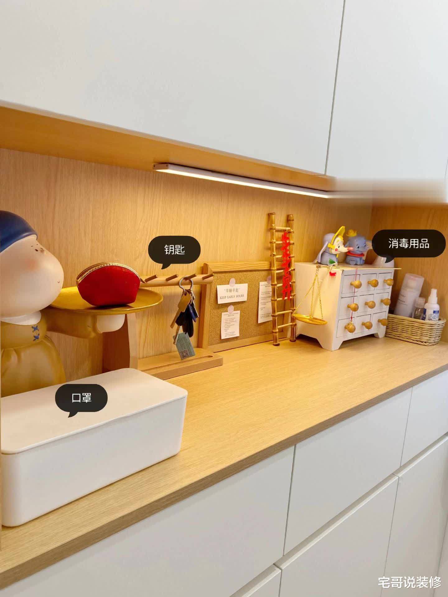 柜子上方还安装了一条感应灯带,归家氛围感直接拉满。