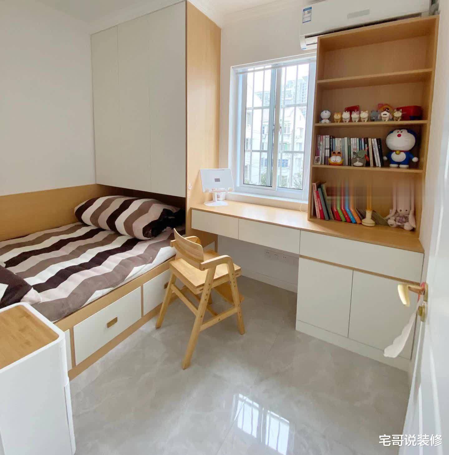③次卧按照常规布局的话空间太小,缺乏收纳空间和学习空间,所以定制了榻榻米。