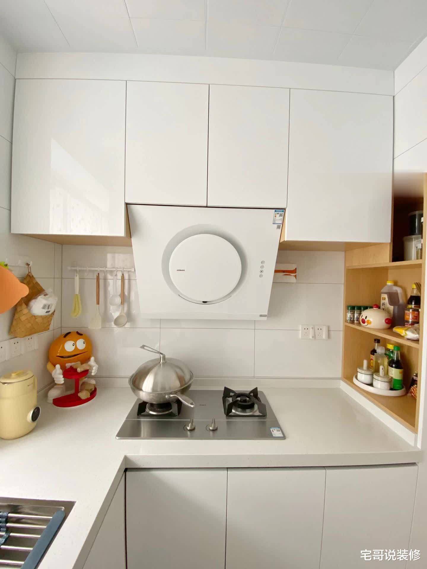 值得称赞的是,小厨房内对于空间的充分利用,不管是墙面空间,还有旁边的空间,都利用了起来进行收纳,让厨房台面随时保持干净和整洁。