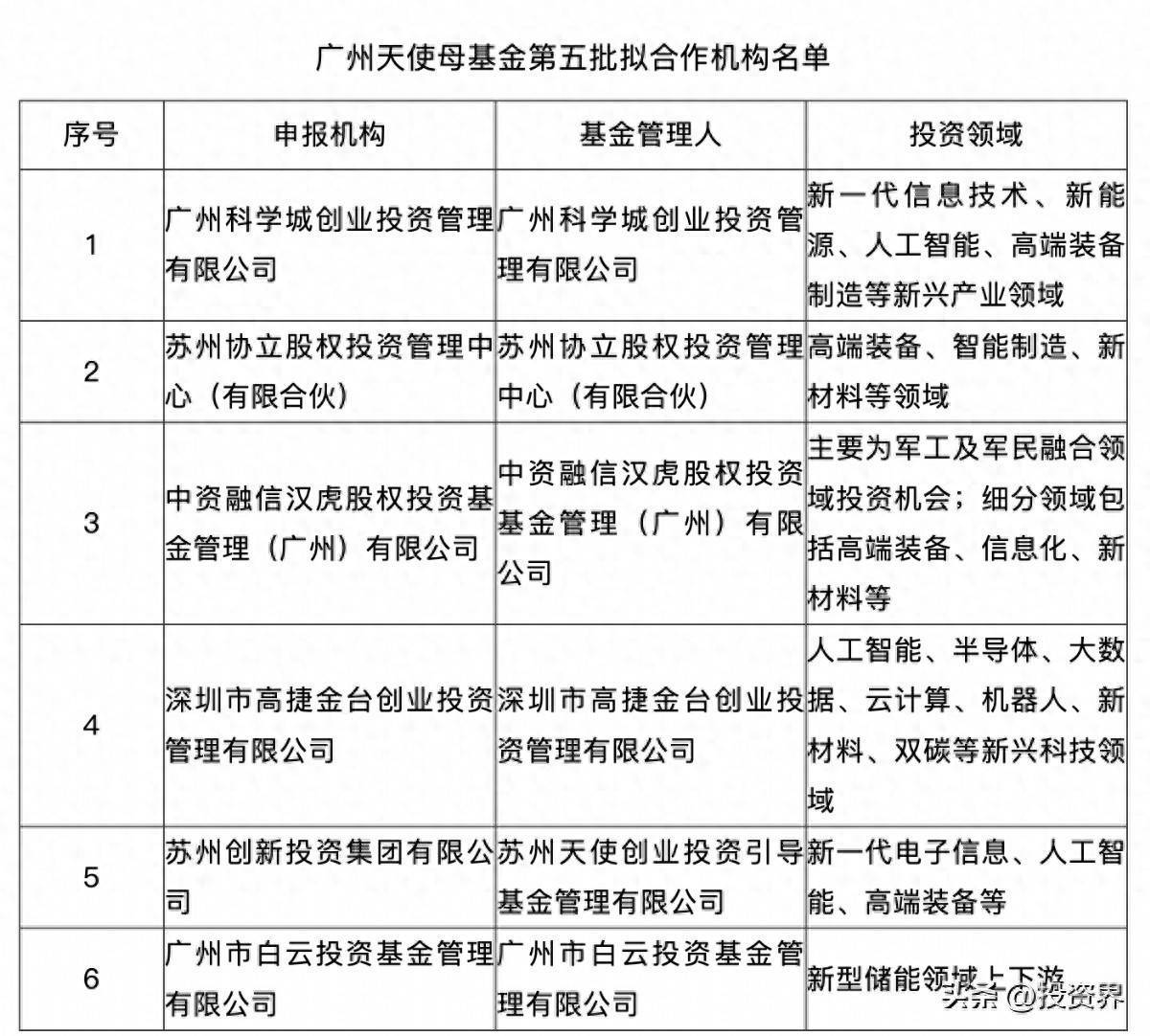 投资界(ID:pedaily2012)12月5日消息永旺配资永旺配资,近日永旺配资,广州天使母基金第五批拟合作机构正式公示,进入基金落地阶段。本次公示的拟合作机构共6家:广州科学城创业投资管理有限公司、苏州协立股权投资管理中心(有限合伙)、中资融信汉虎股权投资基金管理(广州)有限公司、深圳市高捷金台创业投资管理有限公司、苏州天使创业投资引导基金管理有限公司、广州市白云投资基金管理有限公司,投资领域覆盖新一代信息技术、高端装备、人工智能、新型储能等战略性新兴产业和未来产业。