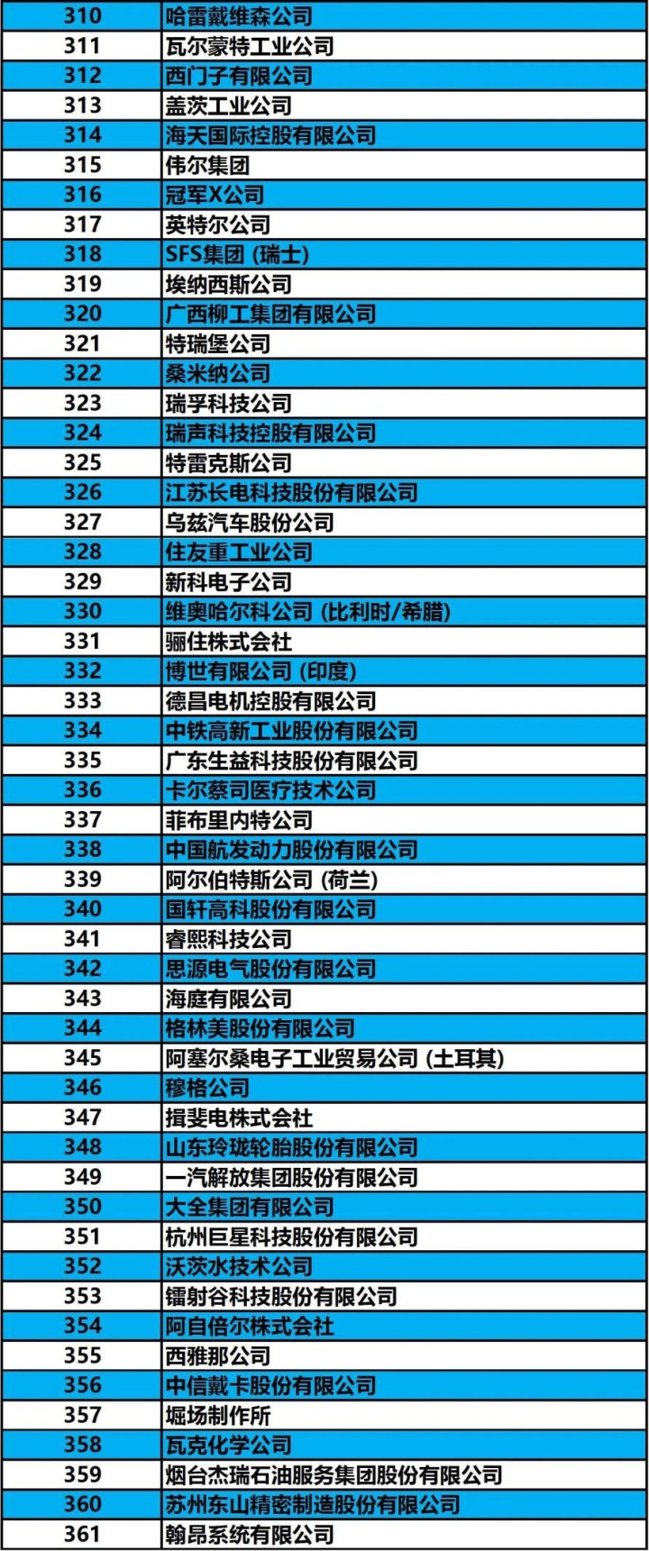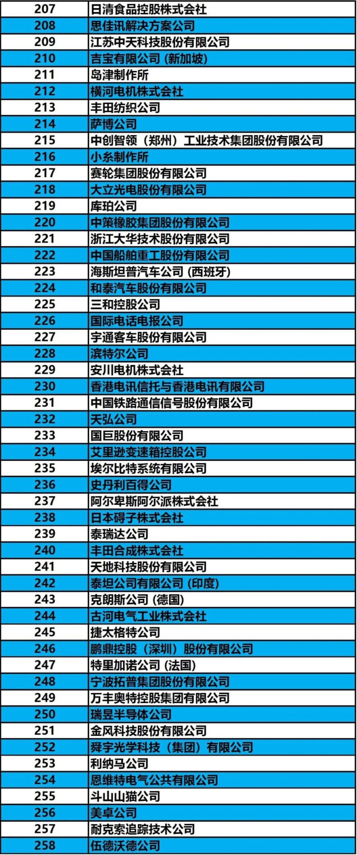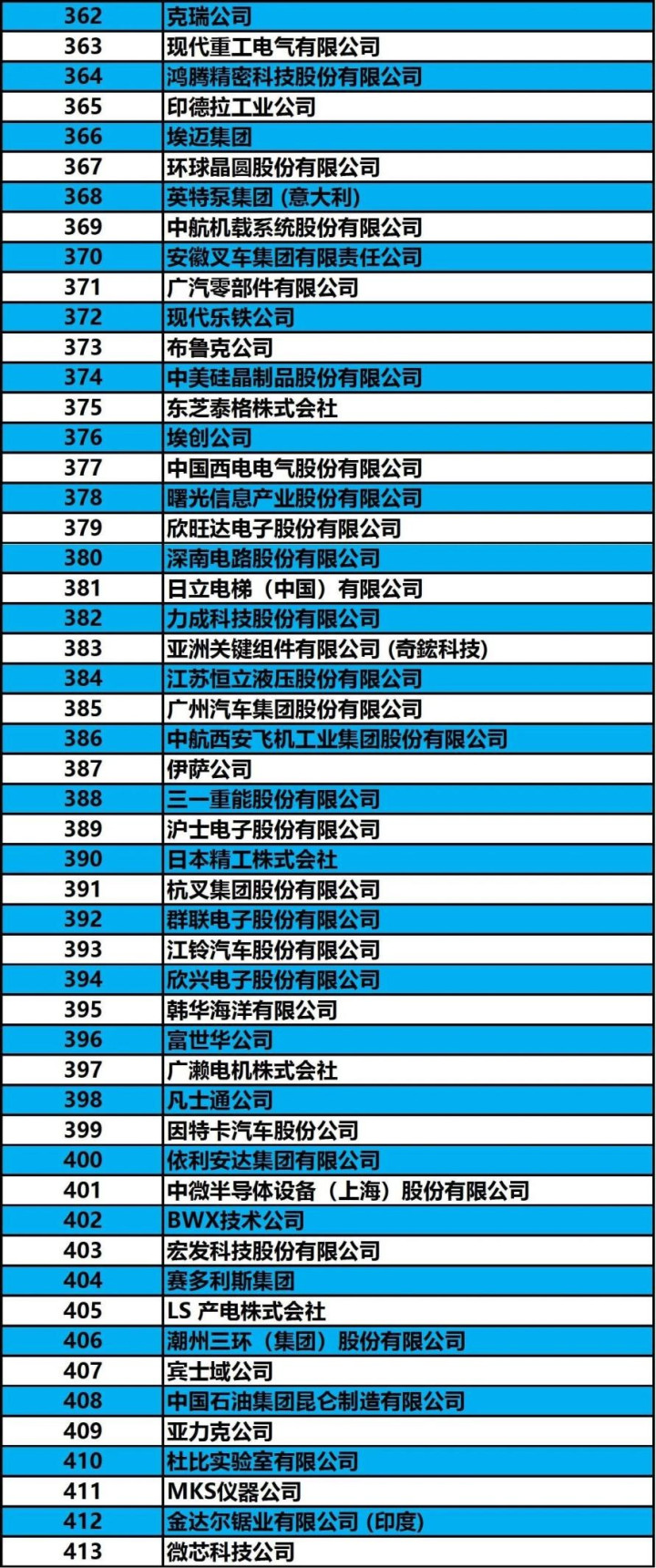 中国位居第一,上榜企业数量达到151家(含港澳台地区)。其中,电子设备48家,汽车制造34家,电气设备13家,通用机械11家,工程机械10家,电池制造、交通装备各有9家,台积电(4)、宁德时代(19)、比亚迪(20)、吉利控股集团(27)、一汽集团(33)、中国兵器工业集团(42)、潍柴集团(49)跻身TOP50。
